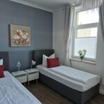 Das City-Apartment 1 begrüßt sie in einer 80qm großen, modern eingerichteten Wohnung, inmitten der schönen Innenstadt von Bernburg. Über einen langen Flur gelangen sie in die 2 Schlafzimmer, das Wohnzimmer mit Schlafcouch für 2 Personen, die Küche sowie in das Badezimmer.